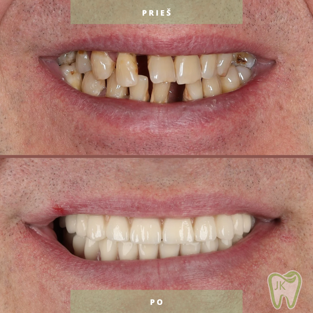 ✅ Esant stipriai pažeistiems ar klibantiems dantims